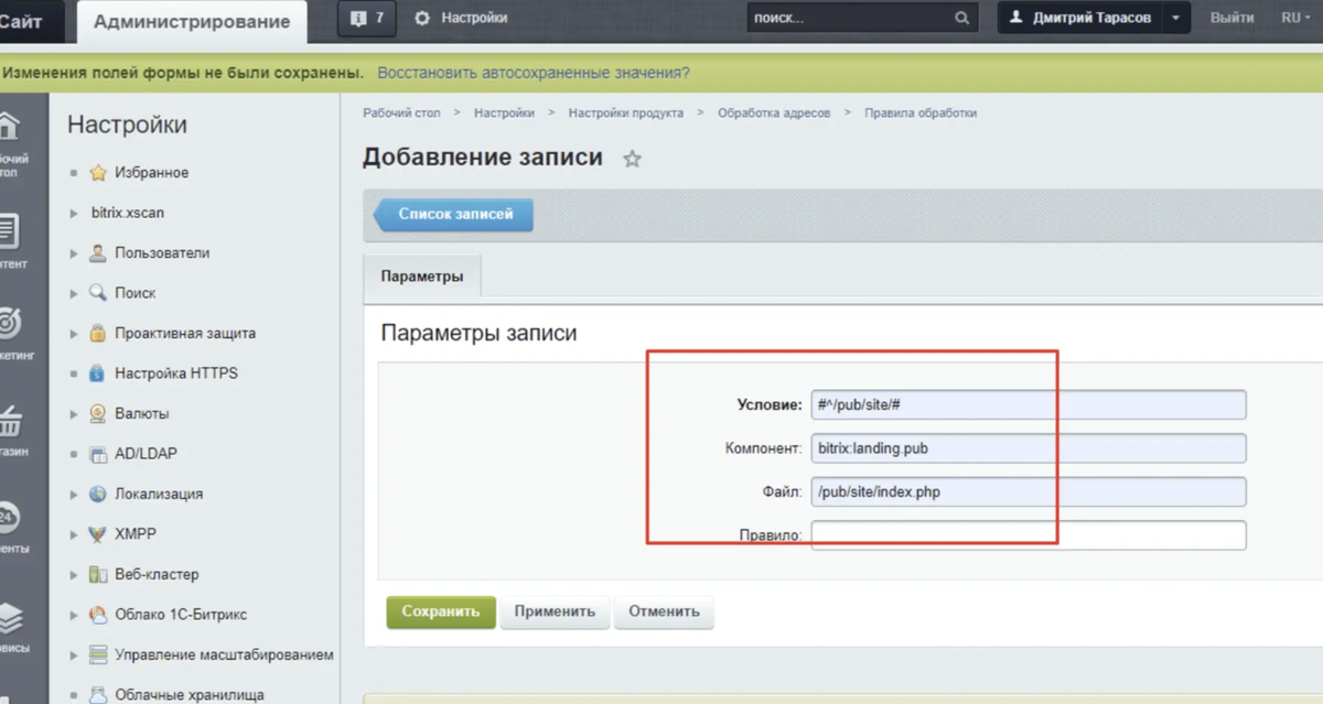 2. Проверить правило обработки для данного файла/bitrix/admin/urlrewrite_list.php