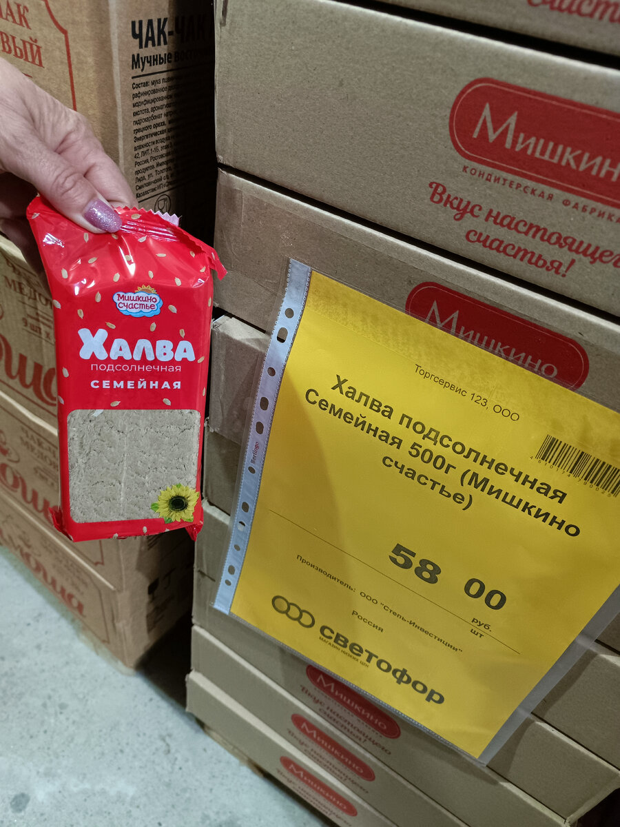 Посетив сегодня "Светофор", заметила просто шквал недорогих товаров, которые предлагаются нам покупателям. Хозяйственные и продуктовые ряды пополнились новинками и это сразу заметно. В этом обзоре, делюсь с вами увиденным в "Светофоре" города Новороссийск. Халва подсолнечная "Семейная" массой 500 грамм, сладкая и вкусная. Цена 58 рублей. Яблочный напиток GOLD, в картонной упаковке с крышкой 950 мл. Цена 51 рубль. Зелёный горошек "Овощ в помощь", в железной банке 420 грамм. Цена 38 рублей. Икра лососевая структурированная, в железной банке с ключом 120 грамм. Цена 122 рубля. Свежие тепличные огурцы от местных фермеров. Цена 52 рубля за 1 кг. Свежие грибы шампиньоны из которых можно приготовить много прекрасных блюд. Цена 123 рубля за 1 кг. Немного подешевела свиная голяшка, каждая около 1,2-1,4 кг. Цена 102 рубля за 1 кг. Копчёная свиная вырезка "Традиционная", фасована по 600-800 грамм. Цена 407 рублей за 1 кг. Складной стол для дачников и туристов, размером 46/68 см и васотой 62 см. Ц