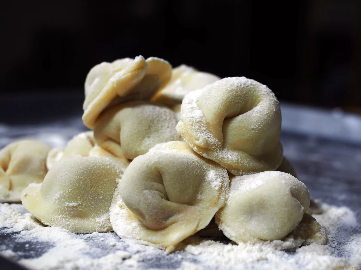 Тесто для настоящих русских пельменей готовится по классическому рецепту, приведенному выше.