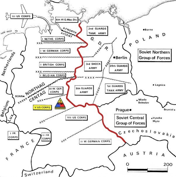Следует отметить, что конфликт между Востоком и Западом во время холодной войны был бы, по сути, вторжением Варшавского договора в Западную Германию. У НАТО не было никакой стратегической глубины, на которую можно было бы положиться, и Варшавский договор безнадёжно превосходил их в численности как действующих, так и резервных сил. Вся экономика, инфраструктура и вооружённые силы стран Варшавского договора были буквально созданы для ведения этой войны. Они готовились к ней в течение 40 лет. Это было всё, к чему они готовились, и они были предназначены почти исключительно для этой войны. Это большая причина низких результатов советских/российских армий в операциях по борьбе с повстанцами, поскольку они не имели ни малейшего представления о том, что они делают.