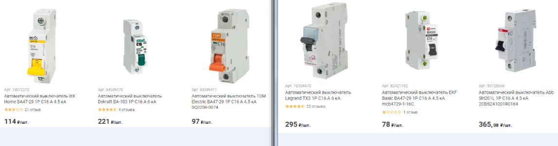 До недавнего времени можно было достаточно бюджетно и качественно собрать электрощит в доме на АВ фирмы hager, да и я сам предпочитал данные АВ, так как по ощущению они мне напоминали АВ фирмы Siemens, цена на них была приемлемая около 300р., дешевле чем АВВ, да и в наличии в одном крупном гипермаркете они были всегда, а теперь можно найти на остатках у некоторых фирм. Но как всегда у нас бывает что-то пошло не так и в гипермаркетах они пропали, а вот у дилеров они конечно есть, но увы цена вопроса почти в 1000р. совсем не радует. Что же в наше время предлагают гипермаркеты. Вот что теперь можно приобрести ! Как видно особо выбор не большой Legrand или АВВ, Legrand я не особо предпочитаю из-за частых, ложных, сработок на скачки напряжения, а АВВ тоже под вопросом чьего производства они могут быть, так как они выпускаються во многих странах мира, ну а про совсем Китай китайский говорить не стоит, так как их массово лепят УК и застройщики. Что же делать и как быть если хочется быть уве