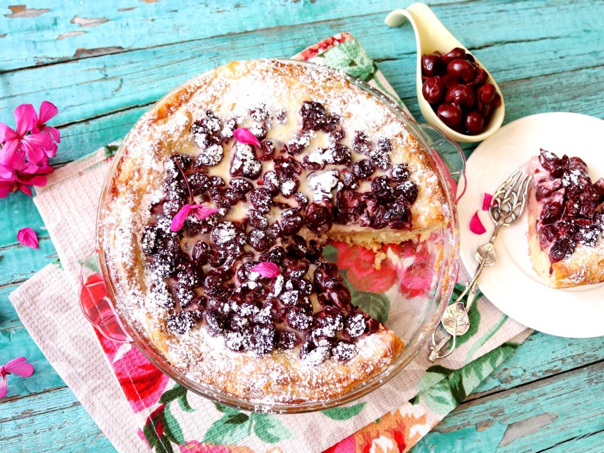 Сахар кладите на свой вкус, ведь вишня может быть как сладкой, так и кисловатой. 4. Влить сливки, насыпать крахмал. 5. Хорошо размешать до однородности. 6. Форму смазать сливочным маслом.