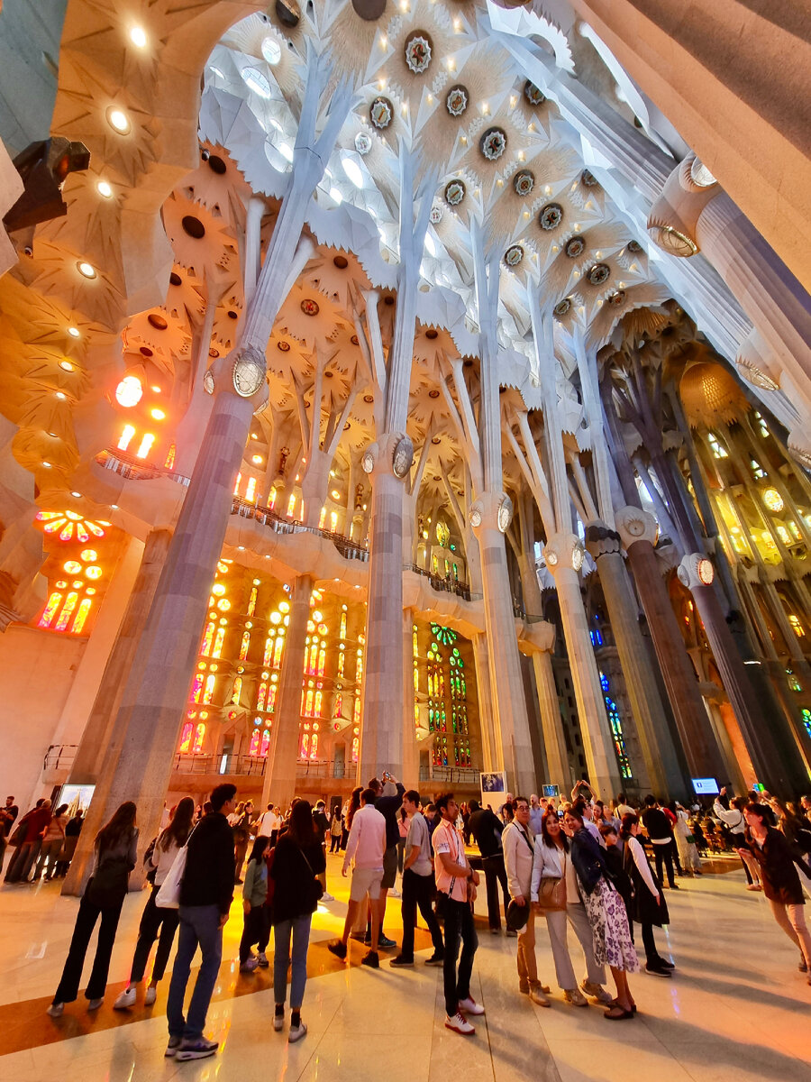 Венец творения архитектора Антонио Гауди, строящийся в центре Барселоны уже 140 лет - храм Святого Семейства. Я был внутри дважды, и оба раза не мог налюбоваться на этот потрясающий свет, который создаётся внутри благодаря огромным цветным витражам и устройству собора. Концепция храма была продумана Гауди до мелочей, и у него получилось не просто красивое здание, а целое произведение искусства со своим сюжетом, словно картина или роман. Например, каждый отдельный фасад представляет определённую часть библейской истории и потому воплощён в разной стилистике; каждая башня, скульптура и элемент - относятся к тому или иному библейскому герою или событию. В общем, при первом посещении однозначно рекомендую слушать аудиогид, чтобы это всё распознать. Ну а войдя внутрь собора вы окажетесь в сказочном лесу у подножия гигантских колонн-деревьев, сквозь крону которых пробиваются лучи солнца, переливаясь во всех цветах радуги. При этом Гауди не только создал интересный сюжет в убранстве, но