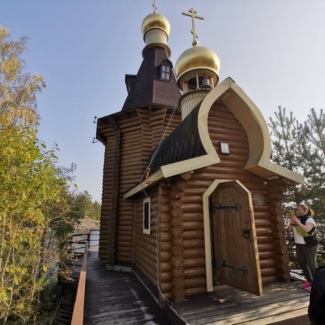 Храм апостола Андрея Первозванного на р. Вуокса. Церковь апостола Андрея Первозванного на р. Вуокса попала в Книгу рекордов Гиннеса, как единственная в мире церковь, построенная на крошечном острове, фундаментом которой служит монолитная скала, выступающая из воды. Храм был построен по древним канонам в форме восьмерки в 2000 году двумя энтузиастами – профессором университета им. Герцена и поддержавшим его идею дачником Андреем Лямкиным, живущим неподалеку от Вуоксы. Церковь носит имя одного из двенадцати учеников Иисуса Христа. По церковному преданию Андрей Первозванный был в этих местах и крестил людей в местных водах. Также Андрей Первозванный является покровителем всех моряков, именно поэтому на каждом корабле обязательно есть Андреевский флаг. Храм приписан к Коневской церкви в посёлке Сапёрное. Церковь действующая, службы проходят по расписанию. Попасть внутрь можно днем в субботу или воскресенье. По предварительной договорённости в храме совершаются обряды крестин и венчани