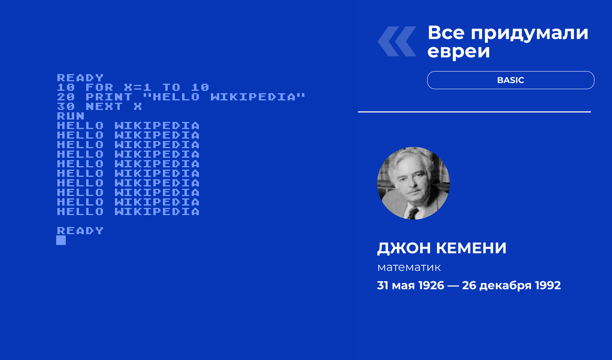 Герой сегодняшней рубрики «Все придумали евреи» вместе с Томасом Курцем, коллегой-преподавателем из Дартмутского колледжа, сначала разработал беспрецедентную систему ротации доступа через удаленные терминалы к единственному компьютеру университета, а затем создал элементарный язык программирования BASIC, чтобы пользоваться компьютером могли студенты самых разных специальностей. Создание универсального символьного кода для начинающих стало настоящим прорывом — BASIC до сих пор остается распространенным языком программирования.