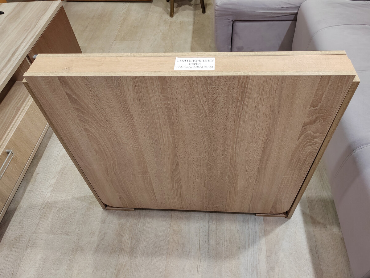 Всем добрый день! 👋 Вам понадобился обычный стол в зал, а места не очень много в квартире, да и ставить стол вам просто некуда?! Не переживайте! В этом случае вас выручит очень узкий стол. Представляете, он всего то 9 сантиметров в ширину! Я когда увидела, что есть такие узкие раскладные столы - книжки на Озоне, была приятно удивлена. Нам как раз такой и нужен был! Вот так он компактно выглядит в собранном виде. Цена такого стола на Озоне 4768 рублей. Я выбрала цвет - дуб сонома. Материа стола ЛДСП, закромлен кромкой ПВХ 0.4 мм, столешница ПВХ 2 мм. Мне этот цвет просто отлично подошёл к тону дерева мебельной стенки. Доставка непосредственно в пункт выдачи заказов Озон, но можно наверное заказать доставку и транспортной компанией. Кстати, весит этот стол 20 кг. Сверху стола имеется крышечка, которая при разбирании стола убирается. На крышке была вот такая надпись на липкой бумаге, которая в дальнейшем хорошо отклеивается) Написали видимо для того, чтобы с этой крышкой не с