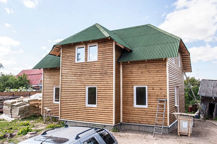 Дальше можно приступать к окончательному закладыванию наборными элементами «проемов» между стойками. Делают это без применения каких-либо уплотнителей, если, конечно, в дальнейшем стены дома будут утеплять снаружи. Если собираемый «проем» является частью глухой стены, то его закладывают целиком, причем с таким расчетом, чтобы верхняя плоскость последнего наборного элемента на 15-25мм возвышалась над стойкой. В результате над ней образуется той же величины зазор. Впоследствии, с ростом нагрузки, создаваемой конструкцией второго этажа (мансарды) и кровлей, а также из-за усадки наборных элементов по толщине величина этого зазора существенно уменьшится и даже дойдет до нуля. На стадии же отделки его можно запенить, а при небольшом размере - зашпаклевать.