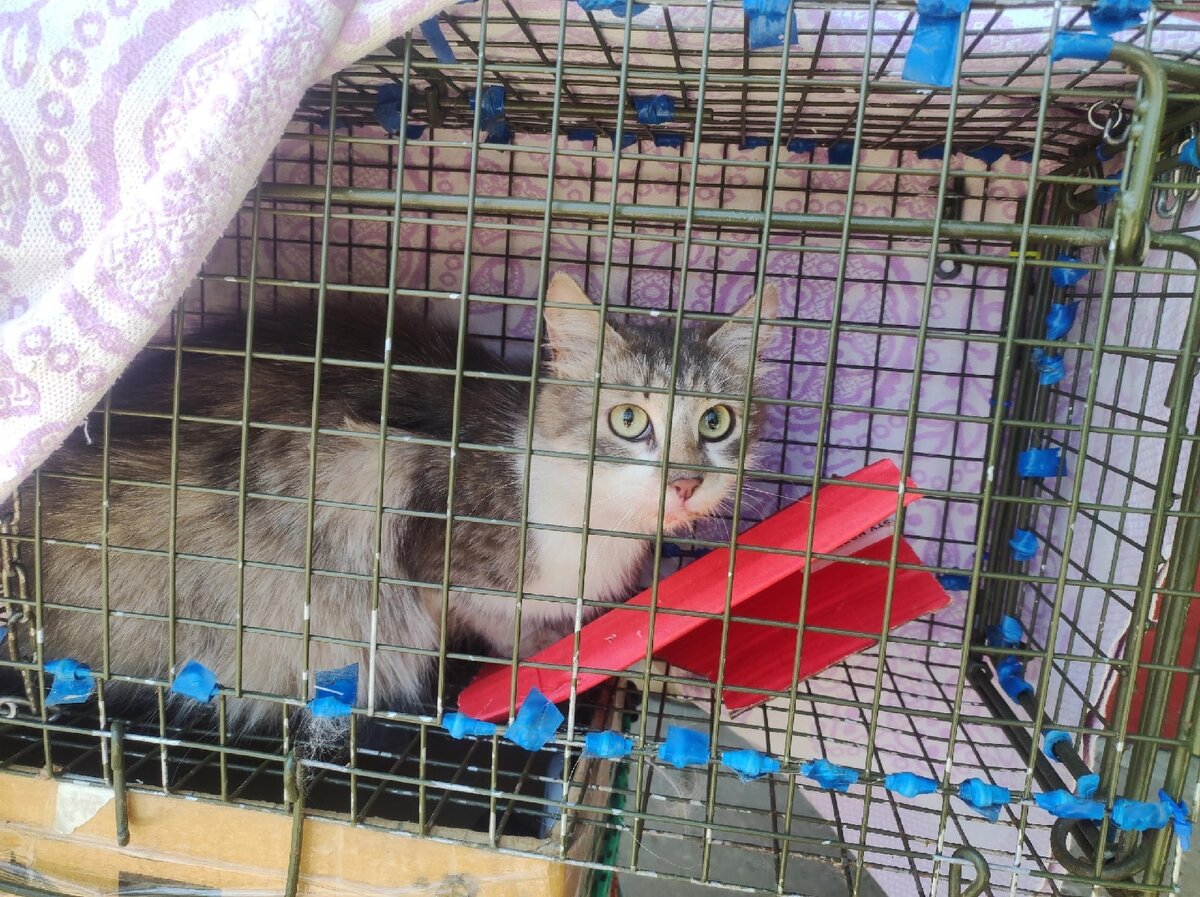 Кошку ловила я. Сидит у меня на передержке послеоперационной.