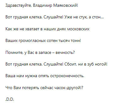 Я к Вам обращаюсь сегодня. Не знаю, к кому еще обратиться... Оказалось вдруг, что мы не ценили Вас настолько, насколько Вы того заслуживаете, Но почему никого не видно Вашего уровня сегодня? Они ведь должны быть где-то... Где? ---------------------------------------- DD
