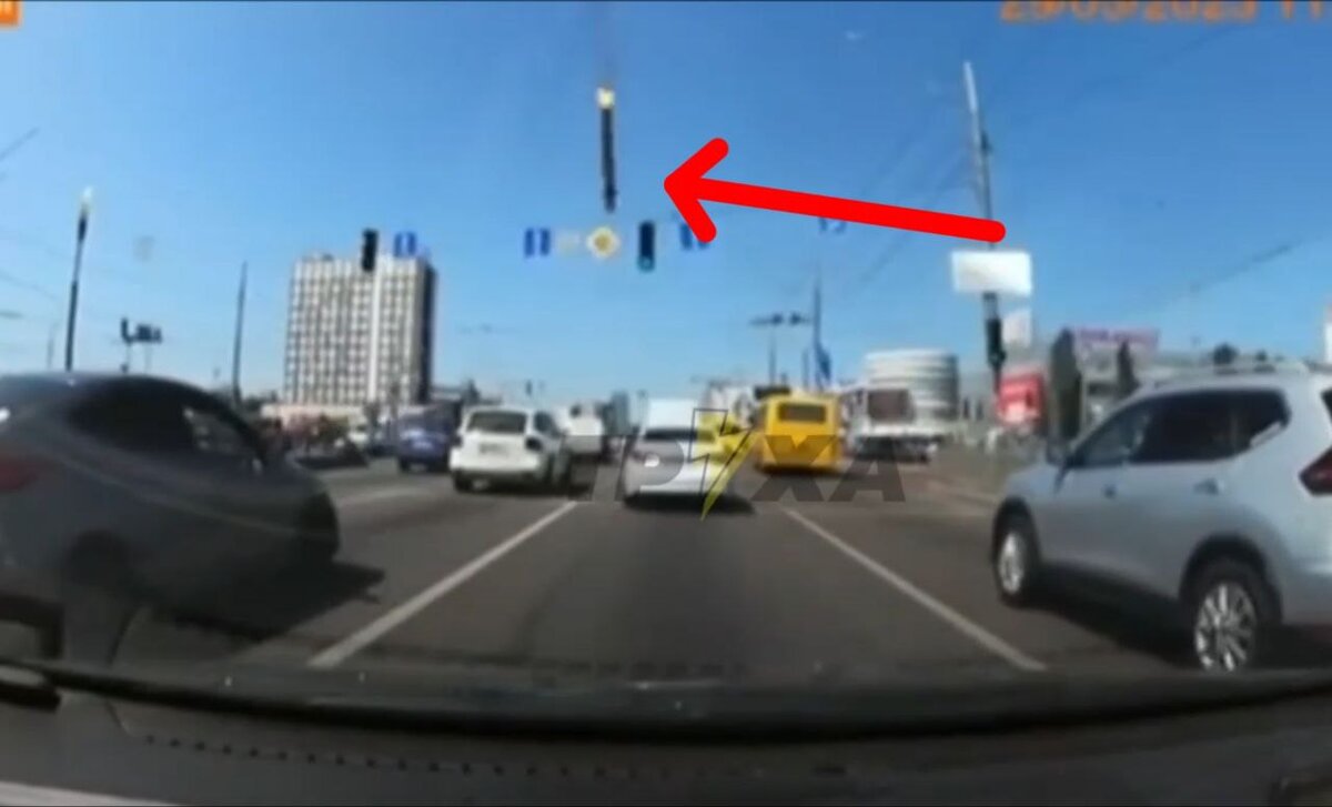 Момент падения ракеты заснял видеорегистратор. Впечатляющие кадры, которыми поделился владелец авто, опубликовал украинский телеграм-канал «Труха»: