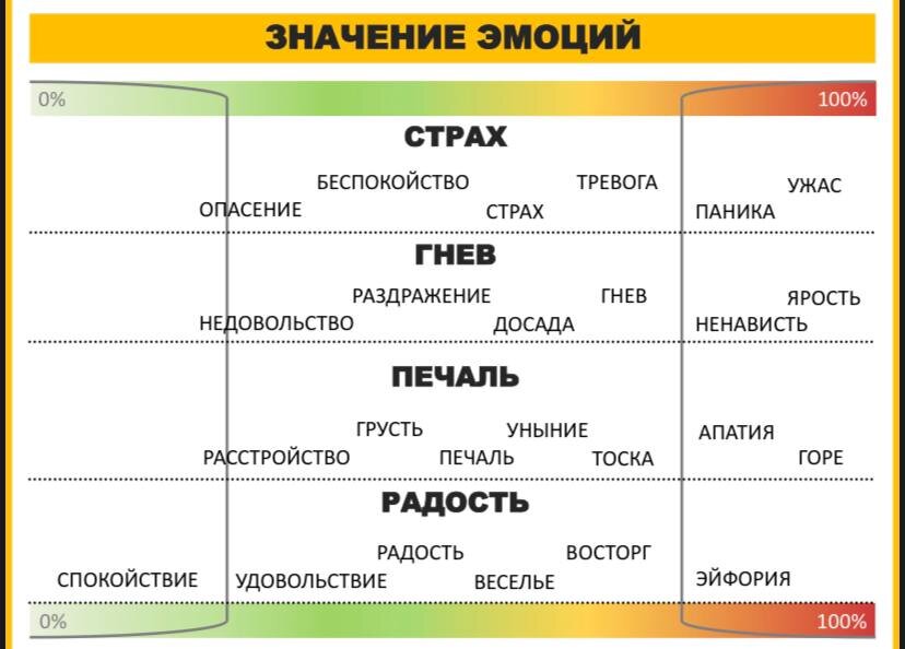 Большинство эмоций можно измерить с помощью внутреннего термометра, от 0 до 100. 🌡️