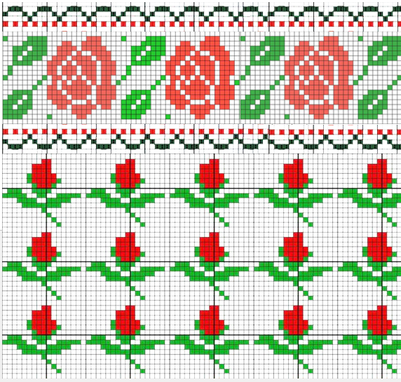 Тихонько в трубку К чему? Ну так, просто подборка с розами Вначале пара схем из готовых, уже кем-то отрисованных элементов из интернета: Дальше 11 схем, которые я нарисовала в бесплатной онлайн-программе pic2pat Некоторые из них выглядят похуже, а некоторые очень интересно В любом случае, с этими заготовками вполне можно работать и дальше, перерисовывая, сглаживая неровности и добавляя новые детали Вот эти мне очень нравятся: Еще парочка свитеров с розами из интернета: и схемы в полосочке: И еще один: Еще просто схемы с розочками: И тоже в рядочек: Схемы, которые рисую и составляю, раздаю бесплатно - свободный доступ. Забирайте в свои копилочки. Но конечно же мне будет приятно, если при копировании вы дадите ссылку на статью со схемами или мой журнал ***************************