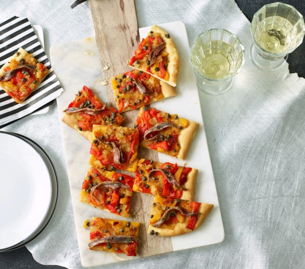 Главная особенность испанской пиццы – это богатая начинка и пряные специи. Особенно любим сладкий перец, который кладется в пиццу в огромных количествах. Ингредиенты Уже в продаже электронная книга в формате pdf по цене 500 рублей. По вопросам приобретения можно обращаться WhatsApp +79287768843 Приготовление 1. Положите дрожжи, сахар и воду в Миксерную чашу и нагревайте в течение 3 мин/37°C/скорость 1. 2. Добавить муку, соль, 60 г масла и яичный желток, замесить тесто Колосок/5 мин, переложить и оставить накрытым в теплом месте для подъема на 45 минут. В это время ополосните Миксерную чашу и продолжайте рецепт. 3. Разогрейте гриль в духовке. Положите перцы, стороной с кожицей вверх, на лист для выпечки и запекайте на верхней решетке, пока кожица не почернеет и не пойдет волдырями. Накройте перцы влажным кухонным полотенцем, оставьте остывать, затем снимите кожицу, нарежьте полосками и переложите в большую миску. 4. Разогрейте духовку до 220°C. Выстелите противень бумагой для выпечки. 5