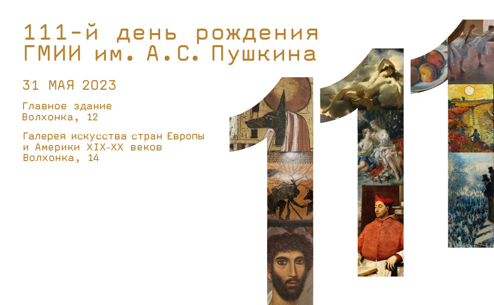 В 1912 году, 31 мая (по старому стилю) в три часа дня, в присутствии царской семьи и множества именитых почетных гостей под звуки праздничной кантаты М.М. Ипполитова-Иванова торжественно открыл свои двери Музей изящных искусств имени императора Александра III. С 1937 года он носит название Государственный музей изобразительных искусств имени А.С. Пушкина. За более чем вековую историю музей пережил многое: первые десятилетия работы были наполнены как радостными моментами, так и непростыми испытаниями. Революция, потери в годы Великой Отечественной войны, тяжелое восстановление и новое закрытие экспозиции в 1949–1953 годах, затем выставки мирового уровня и международное признание, рекордные очереди и начало строительства музейного городка. Сегодня Пушкинский музей — это одно из крупнейших в России художественных собраний зарубежного искусства разных эпох с древнейших времен до наших дней, насчитывающее около 700 000 произведений.