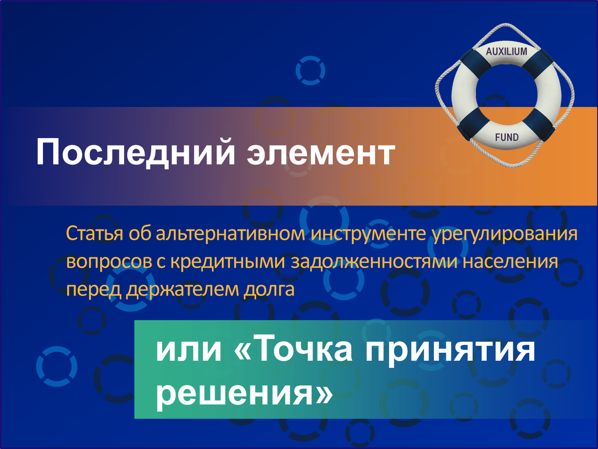 С 28 апреля 2023 года к медиативной платформе AUXILIUM, наряду с микрокредитными организациями, для разрешения вопросов с накопленными задолженностями начали подключаться профессиональные коллекторские агентства. Такая тенденция продиктована объективными причинами – при росте задолженности населения идет смена методологий, которые ранее применялись профессиональными взыскателями на досудебном этапе. Ситуация диктует переход в бесконфликтную зону, так как объем долгов населения растёт, а методы стали малоэффективными и высокозатратными. Сегодня существует 47 млн (база) заемщиков на микрокредитном рынке. Из действующих 17 млн договоров потребительских займов в МФО 43 % имеют просроченные обязательства. Учитывая эти современные тенденции появление звена, обеспечивающего бесконфликтность урегулирования вопроса с задолженностями, представляется закономерным и своевременным. Именно Фонд «Аксилиум» предложил бесконфликтный инструмент урегулирования, впервые в истории объединив на своей площа