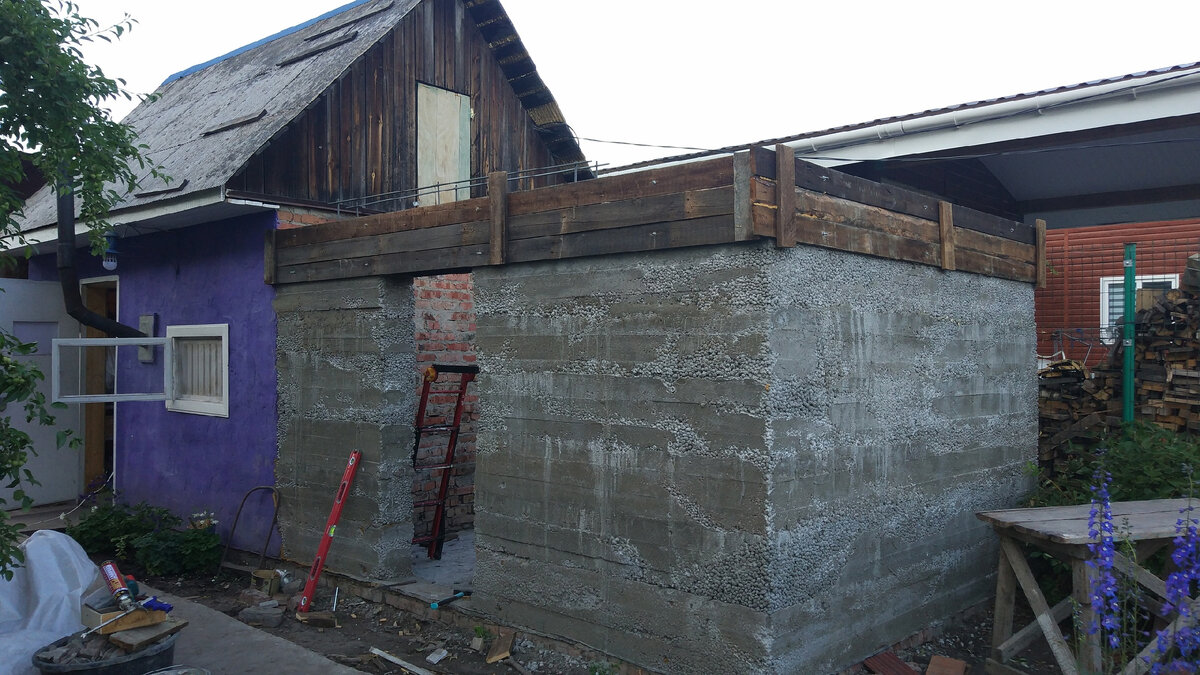 Вот я уже подобрался к дверной перемычке, сварил для нее каркас из арматуры. Параллельно с этим приходилось разбирать руины дома, так что темпы снизились очень значительно: Участок похож на свалку не пройти, не проехать. Мансарду мал-помалу расковыриваем. Аккуратно сняли кровельный материал, и освобождаем лаги перекрытия, эти лаги толстые и в отличном состоянии. Они как раз пойдут на перекрытие нашей новой постройки. Максимально стараюсь сохранить все доски, чтобы лес вообще не пришлось покупать. Кирпичи тоже перебираю. По моему мнению старые кирпичи в разы лучше новодела. Процесс движется: А вот и лаги!