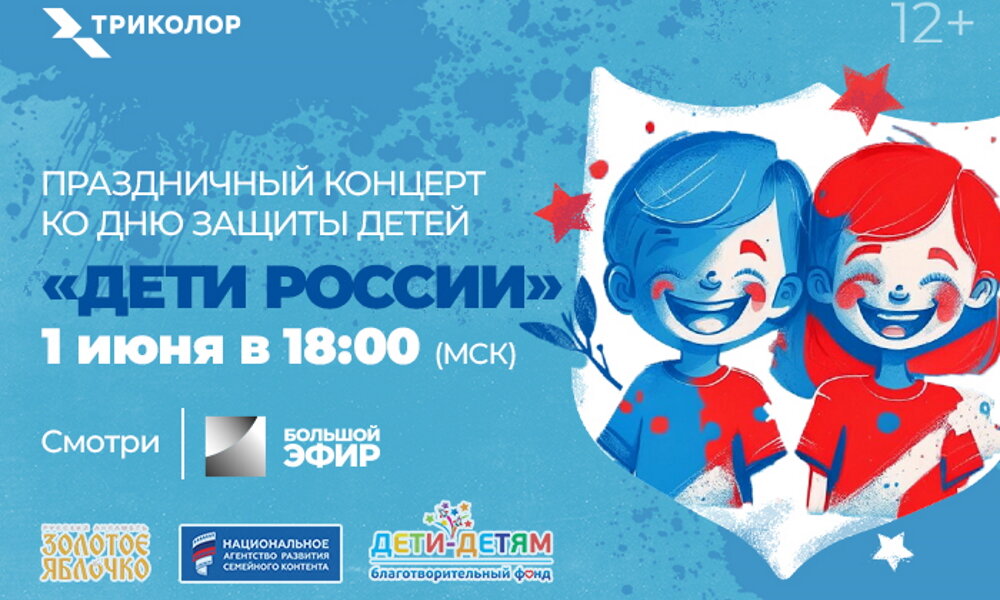 Яркие танцевальные номера, выступления известных артистов и праздничная атмосфера Кремлевского дворца — зрители со всей страны смогут увидеть трансляцию концерта «Дети России» эксклюзивно в эфире телеканала «Большой эфир» от Триколора 1 июня. Специально к празднованию Дня защиты детей Триколор при поддержке «Национального агентства развития семейного контента» покажет масштабное танцевальное шоу из самого сердца столицы. Телезрители концерта «Дети России» смогут представить себя в зале Государственного Кремлевского дворца и увидеть выступления более двух сотен юных артистов из разных регионов страны. Концерт превратится в большое и красочное путешествие по России. Костюмированные номера порадуют постановкой и хореографией, а также познакомят с культурой различных народностей. Вместе с ансамблем «Золотое яблочко» (руководитель — Николай Самусев) на сцене выступят Прохор Шаляпин, Елена Север, Влад Зотов, группа OPEROLE, звезды театра и кино и различные танцевальные коллективы. «Трансляци