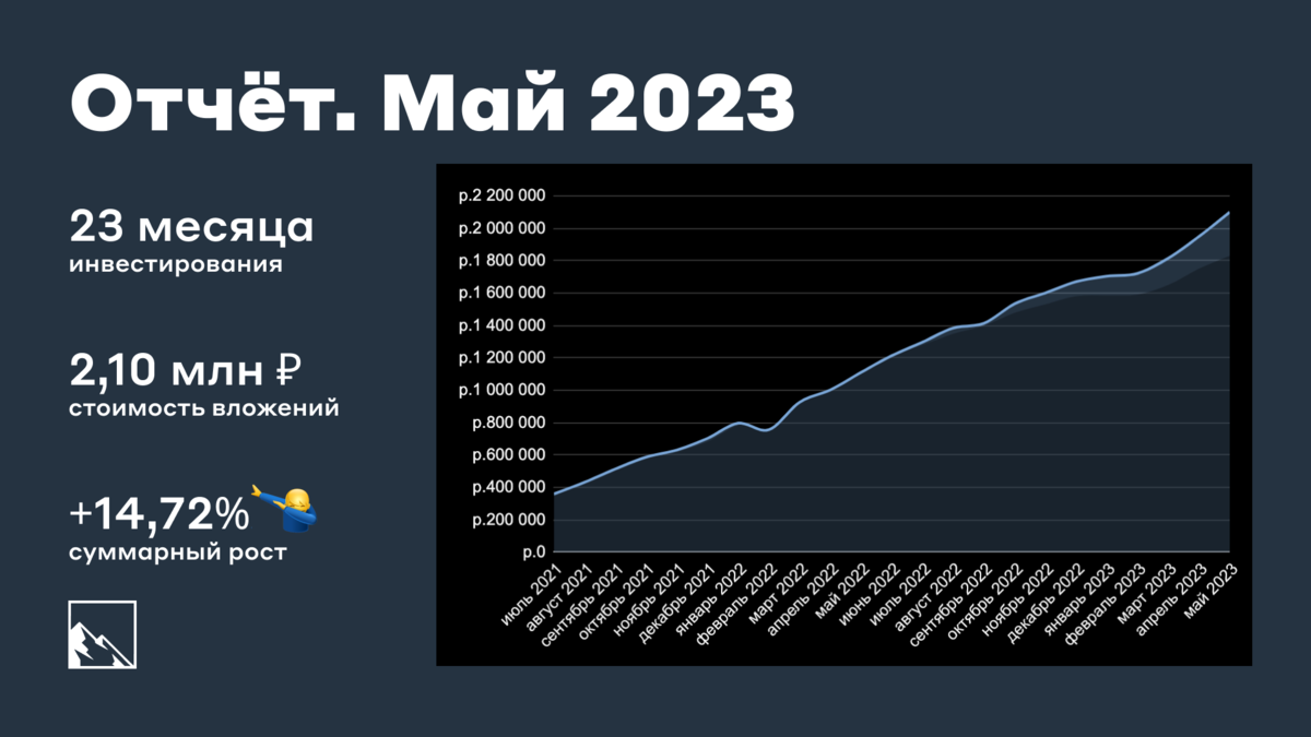 1 июня, значит пора защищать детей и подводить итоги мая! Ежемесячно я пишу отчёт о том, что произошло по финансам и другим моментам. Напоминаю: я начал копить на квартиру в Сочи в июле 2021. 23 месяца позади, портфель перешагнул рубеж в 2 млн. Погнали!