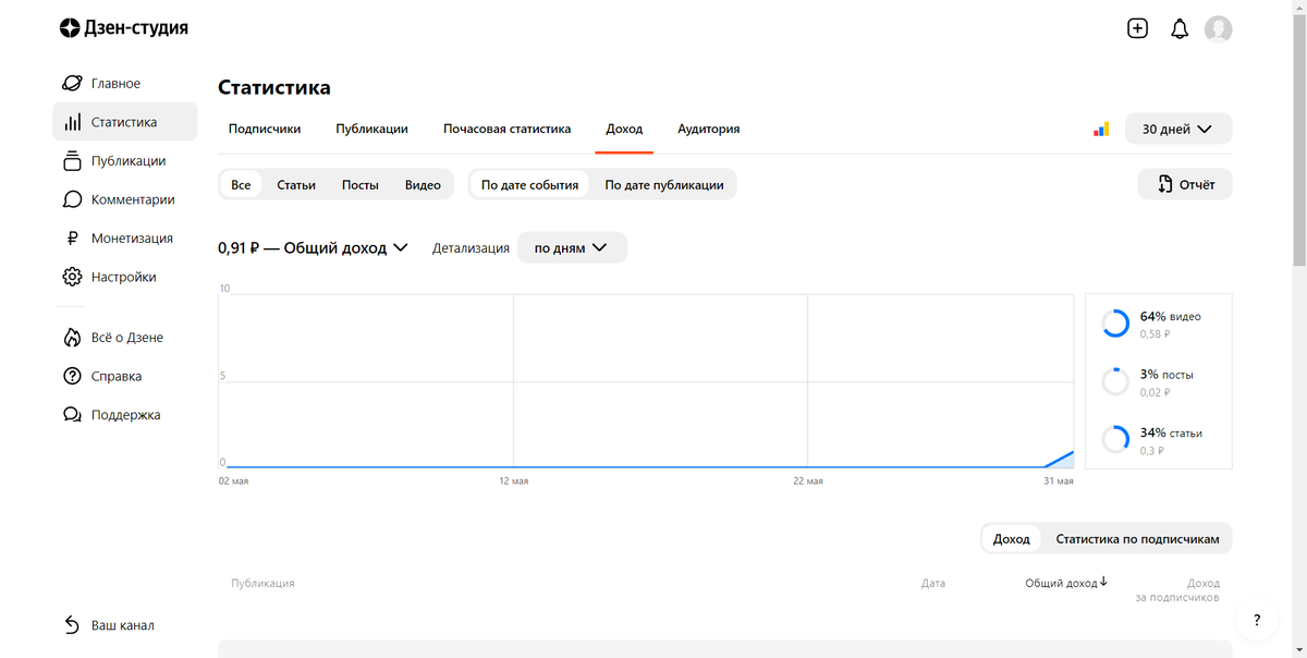Всем привет друзья. В этой статье я хочу рассказать о своем первом заработке на дзене и как вы видите на скриншоте это 91 копейка, но это ведь хорошо, ведь 1 рубль даже дистанционного дохода на много ценнее чем 1 000 000 рублей на работе и это так, ведь время это есть самое ценное, что есть у человека и любые деньги не стоят времени человеческого, а так я зарабатываю на любимом хобби. Буду дальше пробовать зарабатывать, радовать Вас контентом. Цените жизнь ведь кто знает сколько кому осталось жить. Так же я на Ютубе начинал свои первые блоги с инвестиций и сюда я буду потихонечку переносить это свое увлечение у меня будет разноплановый контент со своей уникальной философией. Подписывайтесь на канал и со временем вы все поймете.