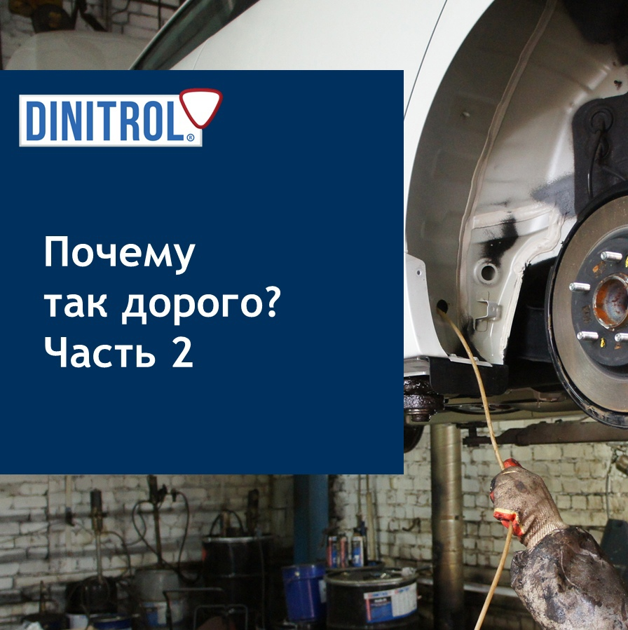 Все составы Dinitrol имеют в составе ингибиторы коррозии — это химические соединения которые приостанавливают процесс коррозии. В дешевых антикорах такого компонента нет, поэтому они ничего не говорят о возможности своего применения на автомобилях с пробегом, понимая что под битумной плёнкой коррозия будет развиваться только быстрее и после зимы эта самая пленка отвалится и представит владельцу авто удручающую картину. . Основной компонент дешевых составов битум, он течет при высокой температуре, не говоря уже про покрасочную камеру, он растрескивается при низких температурах и вполне возможно продержится на автомобиле до первой зимы. Составы Dinitrol работают от –40°С до +110°С и в большинстве своем имеют восковую основу. . Следующий важный факт – доля растворителей в составе. Здесь нужно понять что цена за литр состава это показатель, который не говорит вообще ни о чем. В одном литре состава может быть 45% растворителя, который улетучится после нанесения и в результате мы получим т