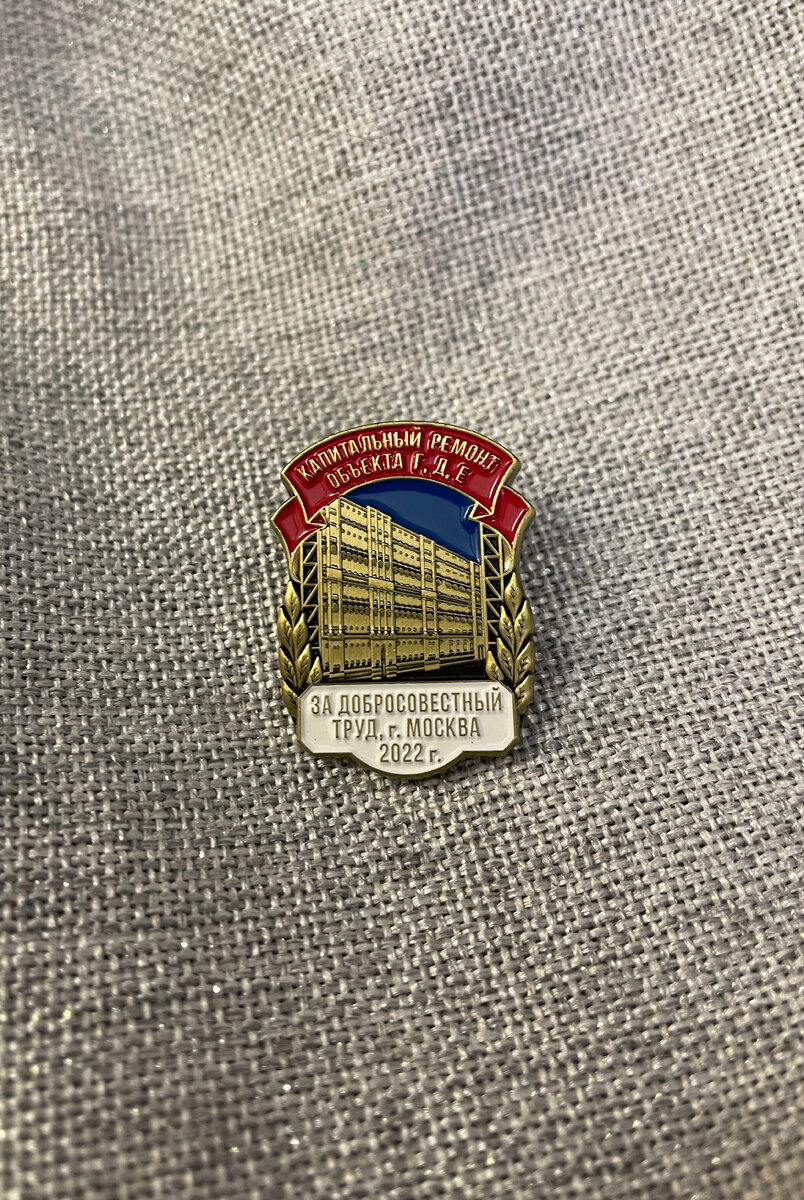 Красивый нагрудный знак который мы изготовили в прошлом году. Им награждали строителей принимающих участие в капитальном ремотне исторических зданий в Москве. У заказчика была только идея изготовить знак. Мы отрисовали макет и воплотили ее в жизнь. За счет того, что покрытие металла античная латунь, все элементы знака отлично читаются. Знак изготовлен в технологии литье, размер 35мм, 3D, мягкая эмаль, покрытие металла античная латунь, на обороте нумерация сделана гравировкой, крепление винт. На изготовление партии нагрудных знаков у нас ушло 35 календарных дней. Готовый заказ мы по традиции бесплатно доставили заказчику. Для заказа нагрудных знаков со своим логотипом Вы можете отправить заявку на почту или запрос через сайт. Наши контакты: grekov@znachkimsk.ru zakaz@znachkimsk.ru +7(926) 404-63-74(WhatsApp) +7(499) 755-72-75 www.znachkimsk.ru