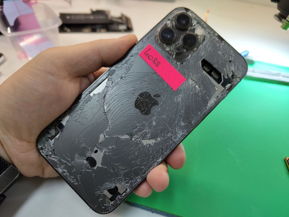Всем привет. Настало время более серьезных кейсов. Сегодня у меня в работе iPhone 12 Pro Max с кодовым именем "Подзатыльник" Поехали! Вот причина его кодового имени) Пришел он из другого сервиса. В состоянии "не включается" Первое что бросилось в глаза это аккумулятор. Задняя крышка разбилась и осколки пробили химпакет батареи в нескольких местах. Разгерметизированная батарея начала вздуваться и хорошо что не замкнула. Горят они редко, а вот подымить могут знатно. Меняю батарею, но этой статьи бы не было, если бы все было так просто. Аппарат не запустился даже с новой, хотя попытки запуска, судя по потреблению были. Разбираю дальше. Осмотр платы показал расслоение межплатного соединения от удара. Сфотографировать это сложно, поэтому покажу как это выглядит при распайке. И, как всегда, в двух словах расскажу что такое межплатное соединение. Начиная с iPhone X, компания Apple, для экономии места и запихивания более емкой батареи, решила разделить системную плату на две части и поставить