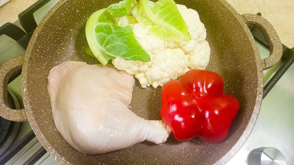 Когда вареная курица надоела: готовлю курицу со цветной капустой и перцем в одной сковороде (сочный и вкусный ужин для всей семьи)