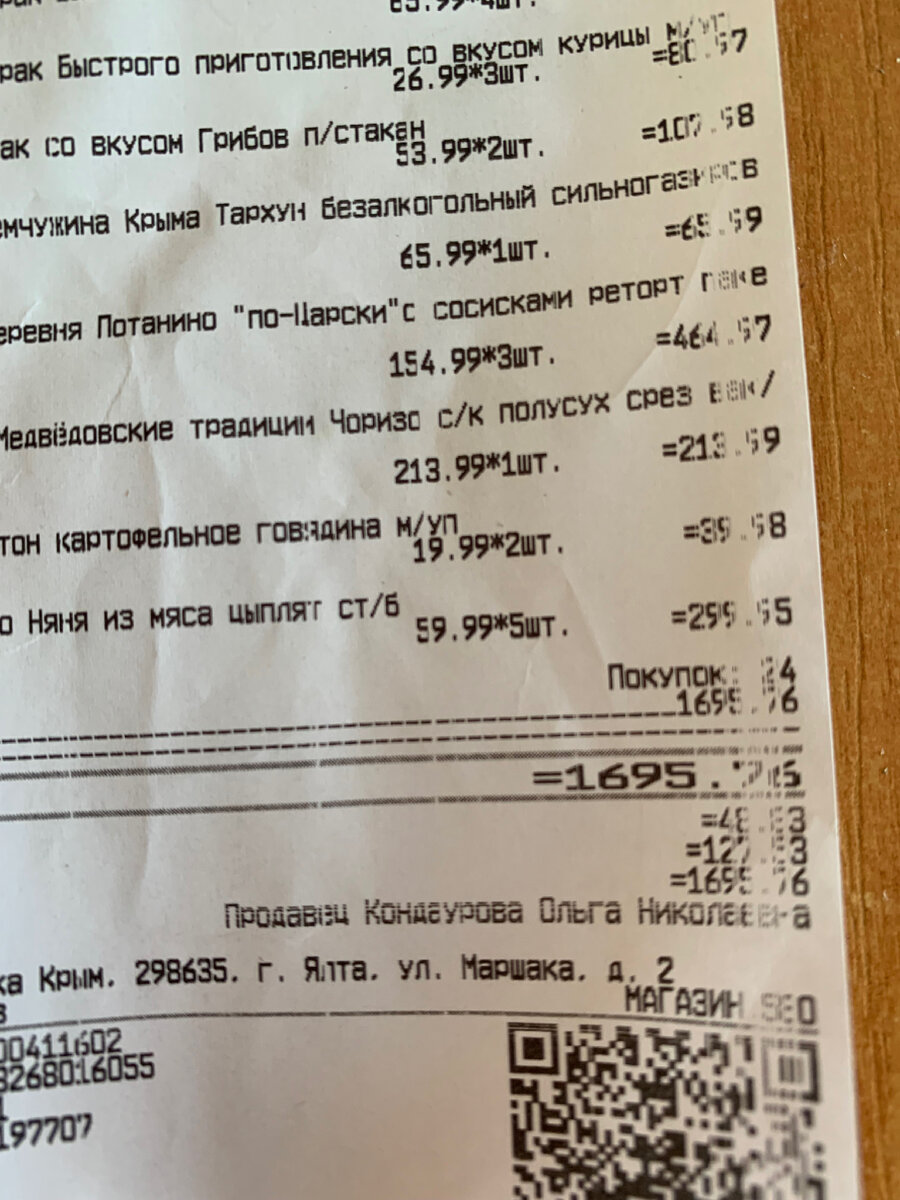 Такую фразу за последние 8 лет, наверное слышал каждый человек. Доброго времени суток, дорогие читатели моего канала. Наступила пора уезжать из Крыма. В связи с обстоятельствами, прибытие и отбытие на полуостров возможно только на поезде. Время в пути от Симферополя до Москвы занимает больше суток. Нас трое взрослых и один ребенок. Мы решили выкупить все 4 места в купе, а не ехать в плацкарте. Конечно в дальнюю дорогу очень важно подготовиться, в том числе и продуктово. Что взять с собой? Чтобы еда неиспортилась во время поездки, но в тоже время было сытно и вкусно. О пользе в этом случае говорить не приходится. Мы с мужем зашли в продуктовый магазин «ПУД», которые распространены в Крыму и набрали непортящихся продуктов. Потратили 1695 рублей на 4 человек: взяли конфеты «Пчелка» мини-карамель леденец микс 180 гр , моей дочке они очень понравились. Я взяла набор лейкопластырей за 78,99рублей, вероятно переплатила по сравнению с аптекой, но я в кровь набила мозоль на пал