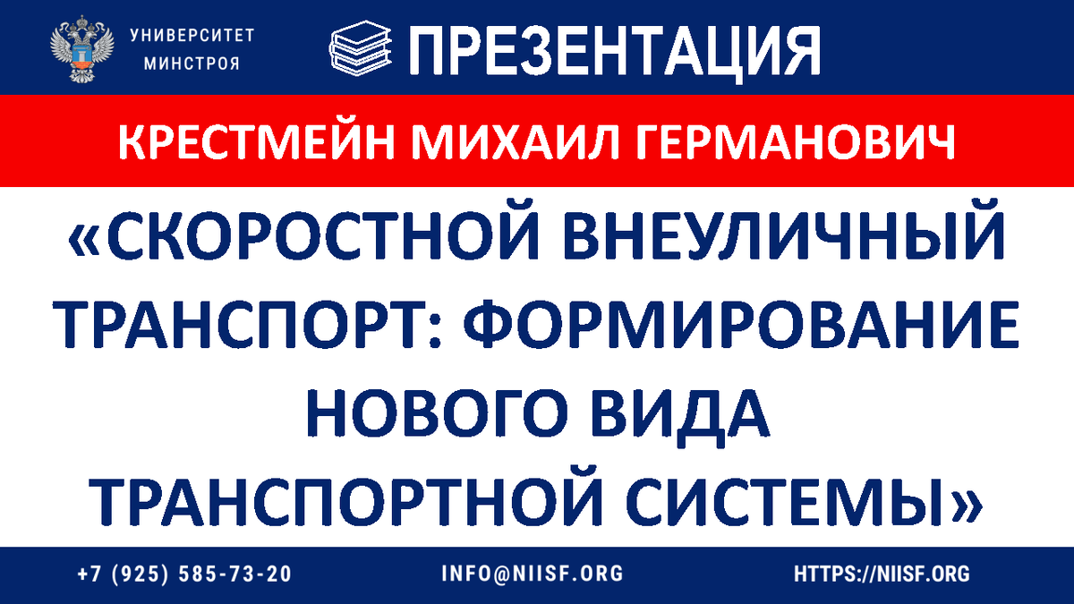 Тема выступления: «Скоростной внеуличный транспорт: формирование нового вида транспортной системы»