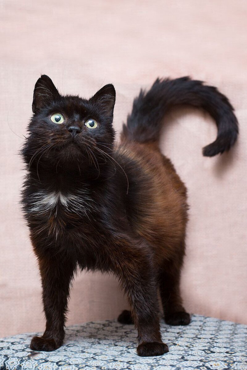 Сейчас Белька живет в нашем приюте "Просто Муся". Мы его пролечили от хвори. Аппетит хороший. Характер золотой. А какой фантастический окрас. Не описать словами. Часть кота - иссиня черная, а другая - медная.