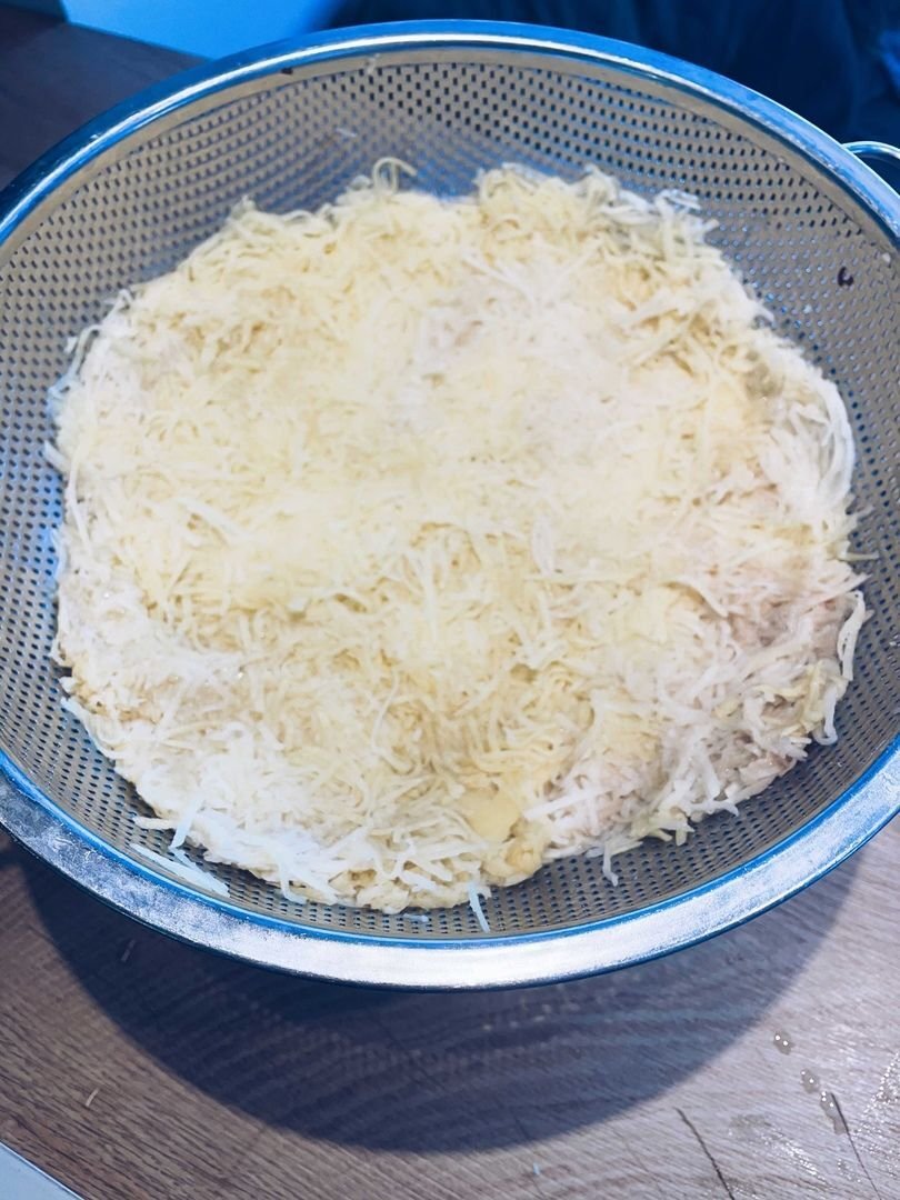 Картофельные вафли - это интересный вариант сытного завтрака. Идеальный гарнир. Это несладкая вафля, которую можно дополнить беконом, яичницей, слабосоленой рыбой, авокадо, творожным сыром и еще много чем. В моем варианте рецепта я дополнительно обжарила бекон и нарезала помидоры черри. Для картофельной вафли вам понадобится: 1. Картофель белый - 800 гр. (для себя можете уменьшать количество, я готовлю сразу много) 2. Сыр твердый - 150 гр 3. Яйцо - 20 шт. (категория 0 или 1) 4. Лук красный - 50 гр 5. Мука - 100 гр (у меня безглютеновая смесь garnec), но можно использовать пшеничную. Если также не едите глютен, но смесь не можете найти, идеально подходит нутовая мука. 6. Соль - по вкусу 7. Масло - смазать вафельницу Приготовление: 1. Картофель почистить, натереть на мелкой терке. Натертый картофель сложите в дуршлаг (под дуршлаг поставьте тарелку) и сильно продавите, чтобы вышла вся жидкость. Выливается довольно много. На дне тарелки остается плотный осадок крахмала. Все это нужно слить