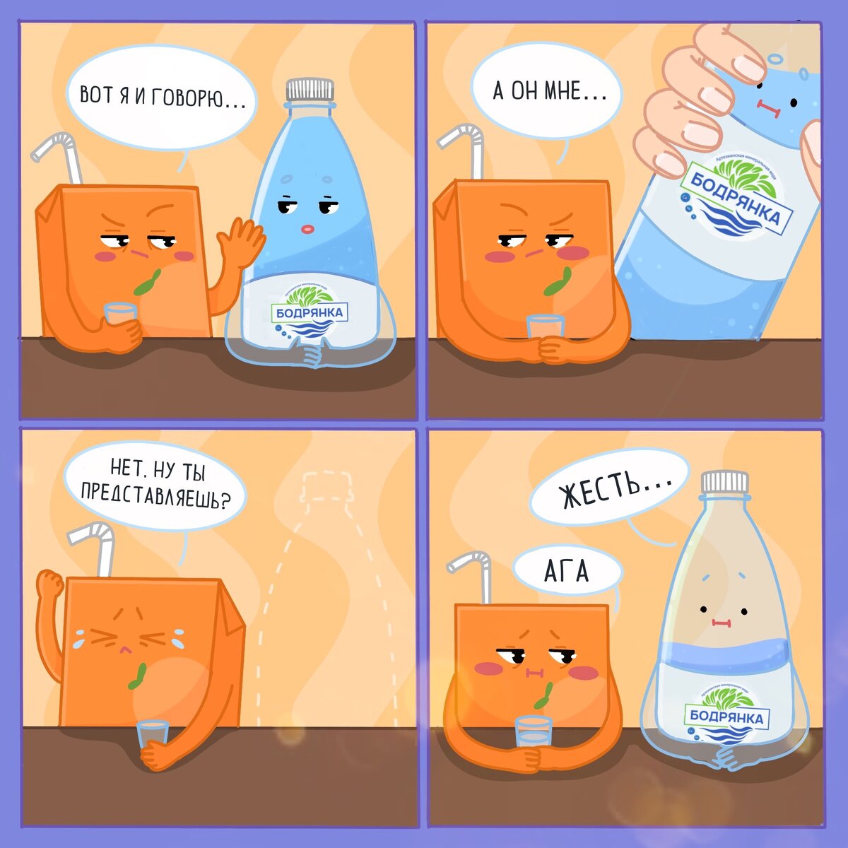 Встретились как-то за барной стойкой чашка кофе, пакетик сока и бутылка воды «Бодрянка» и разговорились о работе. Вода на встречу немного опоздала. — Ты, как всегда, нарасхват? — поинтересовался у нее сок. Все напитки давно привыкли, что у воды всегда много работы, а лето для нее — особенно жаркий период. Питьевой режим летом несколько отличается от обычного, поэтому объем задач у воды еще больше обычного. При повышенной температуре воздуха человеку требуется в 1,5 раза больше жидкости, поэтому восполнять водный баланс нужно чаще. — Не то слово! В жару нужно пить воду по 100 мл каждый час небольшими глотками. Много выпивать за раз врачи не советуют, чтобы не повышать нагрузку на почки. Так что прохлаждаться мне некогда. — А что случится, если пить мало воды? — поинтересовался кофе. — Если не восполнять дефицит жидкости, может возникнуть обезвоживание. Оно проявляется такими симптомами как давление, частый пульс, сухость кожи и слизистой. — И сколько же воды надо пить каждый день? — сок