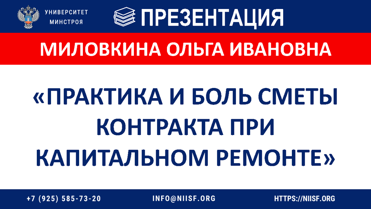 ПРЕЗЕНТАЦИЯ. Миловкина О.И. Практика и боль сметы контракта при капитальном ремонте
