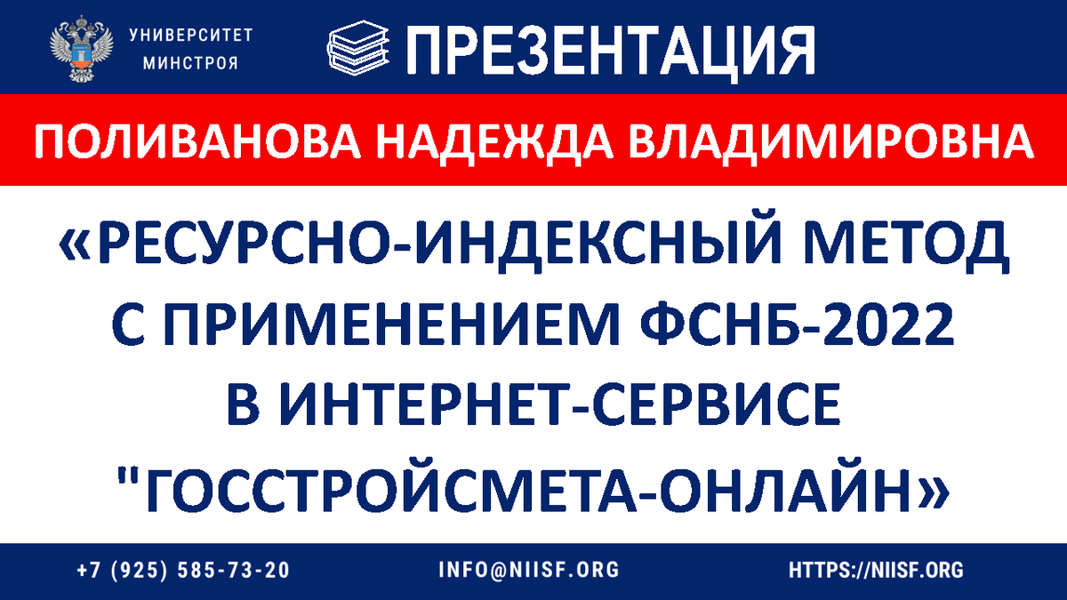 Тема выступления: «Ресурсно-индексный метод с применением ФСНБ-2022 в интернет-сервисе "ГОССТРОЙСМЕТА-онлайн»