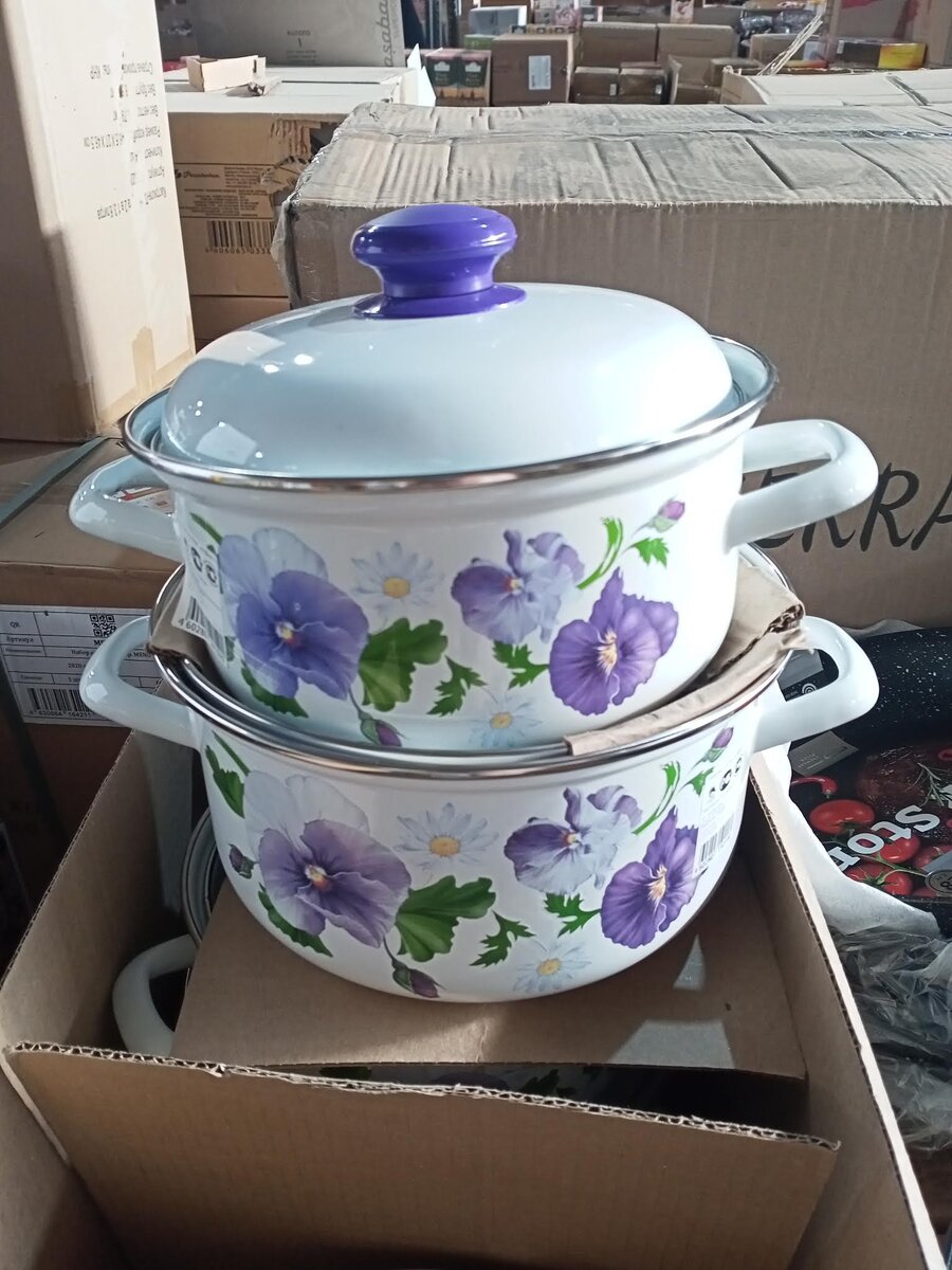 Добрый день, дорогие друзья. Сегодня расскажу вам о новых и недорогих товарах, которые появились на полках магазина Светофор. В продаже увидела такие симпатичные эмалированные кастрюли с деколью, в большом ассортименте. Производитель Лысьвенские эмали, Россия. Объем кастрюли 2 литра, цена 455.90. Кастрюли классного качества, металл толстый, эмаль нанесена качественно, ровно, посуда без сколов, вмятин и царапин. Аллюминиевые кастрюли-мантоварки. Производитель кастрюль Россия. Кастрюля содержит 3 аллюминиевых диска, крышку, объем кастрюли 4.5 литра, диаметр 26 см, цена 1188.90. Кастрюли отличные и недорогие. Сковороды Taller morion. Производитель Китай. Диаметр сковороды 28 см, цена 1161.90. Сковороды изготовлены из литого аллюминия, имеют качественное антипригарное покрытие и индукцию. Приобрела такую сковороду, все устроило. Эмалированные кастрюли без деколи. Российское производство. Объем кастрюли 5.5 литров, цена 793.20. Кастрюли изготовлены из толстого металла, в комплект также вхо