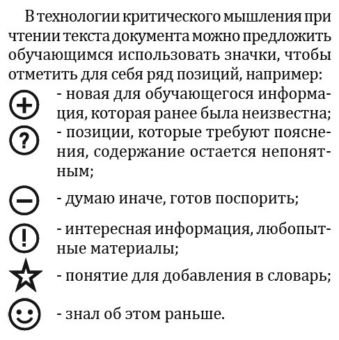 Могут быть использованы другие значки и позиции, но при систематическом и последовательном использовании такой работы с текстовыми материалами у обучающихся возникает привычка и появляется опыт осознанного чтения.