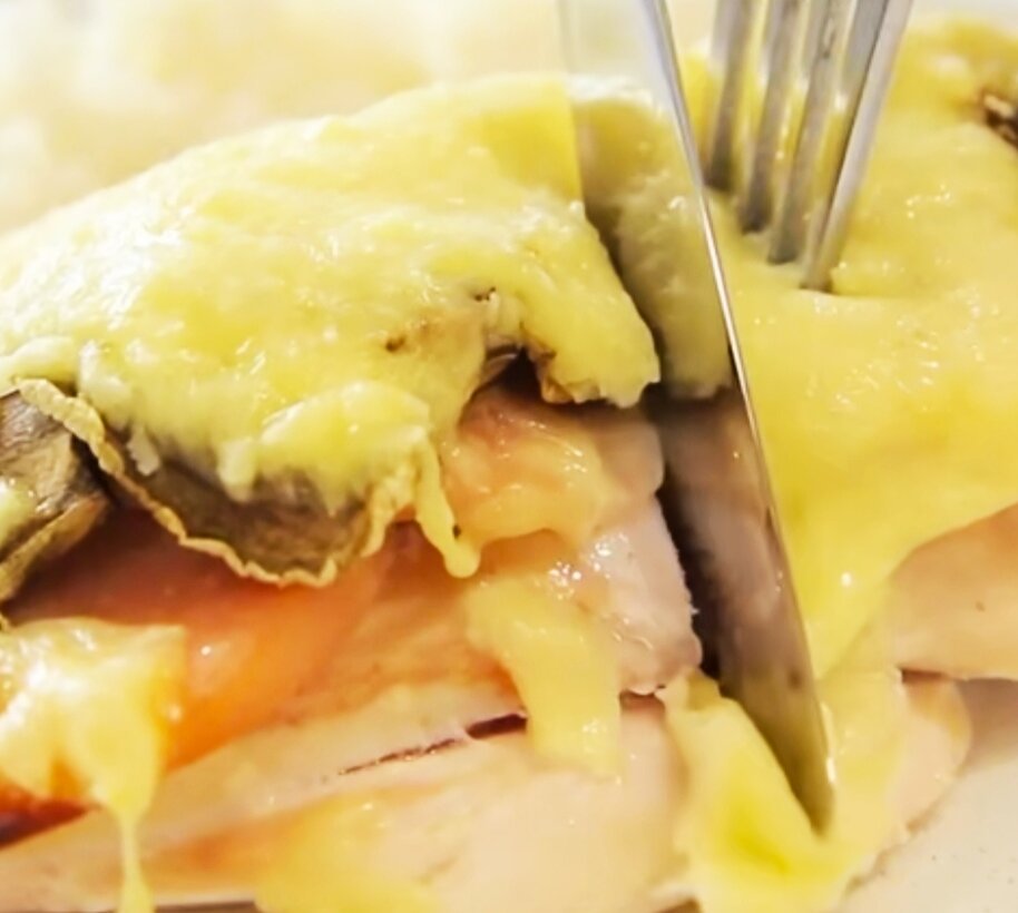 Это блюдо очень вкусное и к тому же в нём всего 178 калорий на 100г Вам понадобится: Грибы и ветчину режем пластинками. Ветчина не запрещённый на ПП продукт, главное выбирать её с хорошим составом, где на первом месте идёт мясо птицы. Куриное филе не отбиваю, а просто выкладываю в жаропрочную форму. Хорошо солю и сверху на каждый кусочек выкладываю несколько ломтиков ветчины. Далее выкладываю грибы и убираю готовится в духовку. Выпекаем при температуре 180 градусов олко 25 минут. Далее посыпаем блюдо тертым сыром и убираем в духовку ещё минут на 10 - 15. Это ооочень вкусно! Попробуйте!