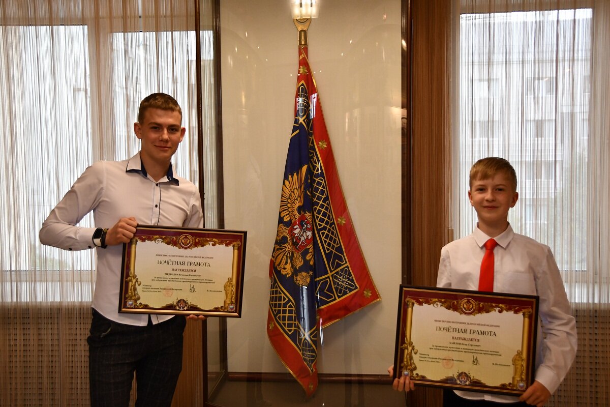 Двое юных кузбассовцев получили награды от министра внутренних дел РФ Владимира Колокольцева за проявленный героизм. Награждение неравнодушных детей и подростков из разных регионов страны, которое состоялось 1 июня, приурочили к Международному дню защиты детей. — Во всех уголках России живут неравнодушные граждане, на чью поддержку можно рассчитывать. Среди них много молодёжи — и это вдвойне отрадно, — отметил глава МВД РФ. Владимир Колокольцев поблагодарил юных героев за добрые дела. Он отметил, что всех их объединяет благородство, ответственность, принципиальность, и пожелал детям отличных оценок, здоровья, успехов в спорте и верных друзей. В Кузбассе награды министерства 16-летнему Вячеславу Медведеву из Топок и 11-летнему Егору Хайлову из Новокузнецка вручил начальник ГУ МВД России по Кемеровской области генерал-майор полиции Геннадий Корниенко. В кузбасском главке полиции рассказали о том, чем отличились герои. В ноябре 2022 года к Вячеславу, который гулял с девушкой в центре горо