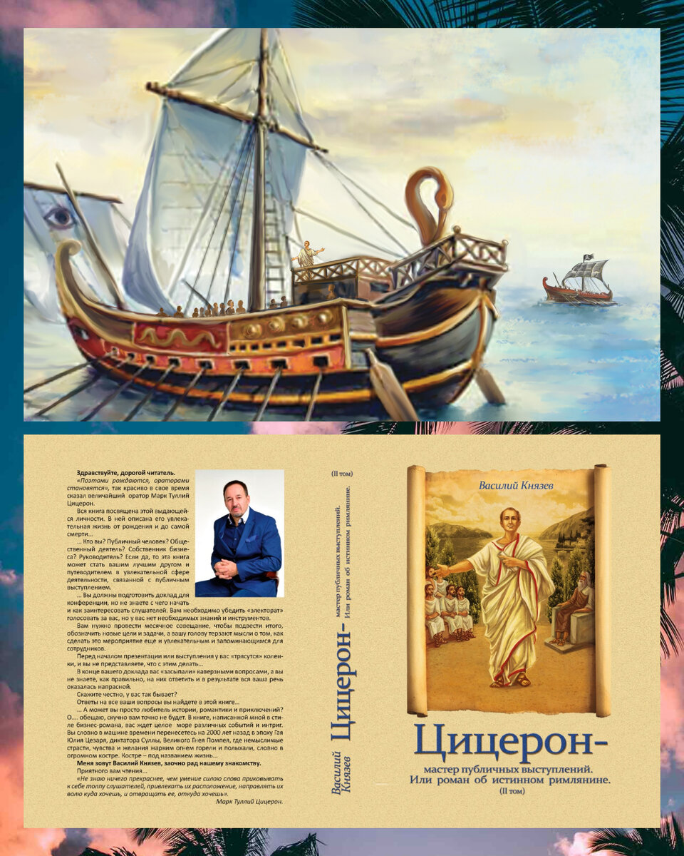 Второй вариант. Он больше подходит тем, кто любит все делать методично и не спеша, кто желает не только приобрести полезные инструменты и знания для публичного выступления, но и получить от книги нечто большее. Зарядиться ее энергией. Этот вариант Ваш, если Вы любите историю и у Вас есть стремление полностью погрузиться в эпоху поздней римской республики времен Цицерона, Гая Мария, Суллы «Счастливого», Великого Гнея Помпея, Гая Юлия Цезаря, Марка Антония. Вы хотите почувствовать «дух того времени» и с головой окунуться в эти полные счастливых и трагичных событий времена? От рождения и свадеб до изгнаний и … финала.… Если да, то мой Вам совет: читайте не спеша, не «проглатывайте» книгу за один вечер.