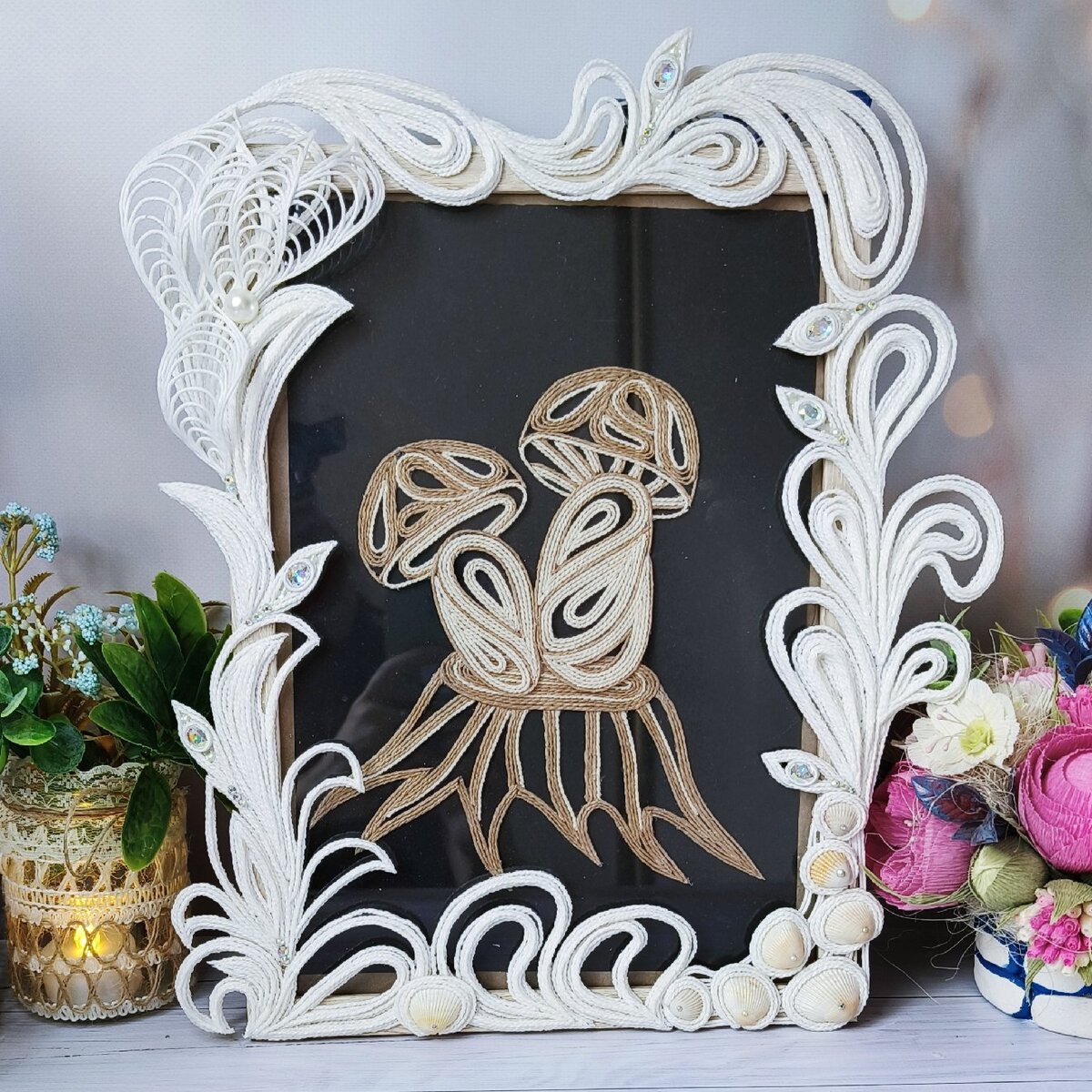 Сегодня мы сделаем с вами вот такую картину из ниток и джут в технике филигрань из ниток.