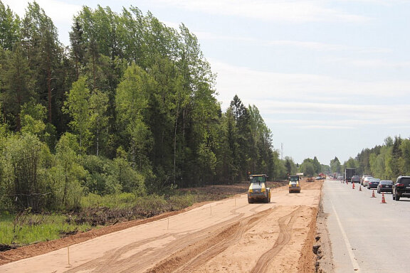 Специалист отмечает, что на территории очень много болот, и для того, чтобы построить дорогу, нужно вынуть слабый грунт и заменить его песком. Глубина болот, в соответствии с проведенными изысканиями, доходит до 4,5 метра. На сегодняшний день выторфовка произведена на 70 %. Эти работы ведут с зимы. Слабый плохой грунт специалисты извлекают и меняют его на дренирующий и непучинистый.