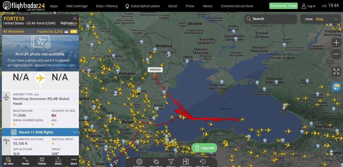 Ибо «государство» Украина не может обеспечить безопасность своего президента Необычный маршрут сегодня продемонстрировал американский воздушный разведчик «RQ-4B Global Hawk», отклонившись от привычного нарезания кругов в воздушном пространстве Чёрного моря. Вылетев вчера в 4:00 утра (7:00 мск) с авиабазы НАТО Сигонелла, что на о. Сицилия, он сначала отправился, как всегда, в заданный район над морем, а затем, вчера вечером, неожиданно сменил маршрут к границам Молдавии: Поскольку предыдущие два вылета сопровождались громкими событиями (атака морских беспилотников на корабль ВМФ РФ «Иван Хурс», а затем атака БПЛА на Москву), выходящими за привычные рамки хода СВО, то логично было бы предположить – вновь что-то готовится. В общем, внимание переключилось на Приднестровье, что тоже логично – там активизировалась Европа, плотно запустившая гибридные щупальца, однако впоследствии выяснилось: сегодня рано утром Зеленский прибыл в Молдавию для участия в саммите Европейского политического сооб