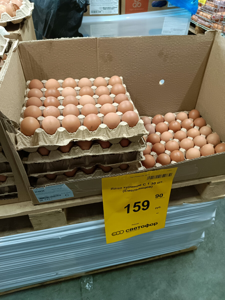 Посетив недавно "Светофор", заметил длинную очередь в кассу магазина. Каждый покупатель набрал много разнообразного товара, которого стало очень много в отделах и спокойно ожидал своё время. А цены действительно в этой сети сейчас очень приятные и поэтому, посетители легко расстаются со своими деньгами. Предлагаю вашему вниманию обзор из "Светофора" в городе Крымск. Крупные куриные яйца категории С 1. Цена 160 рублей за 30 штук. Мороженая клубника из Ростовской области. Цена 131 рубль за 1 кг. Но лучше купить на рынке пока ещё идёт сезон. Свежие грибы шампиньоны от местных фермеров среднего размера. Цена 123 рубля за 1 кг. Салатные крупные огурчики из местных теплиц, но можно подобрать небольшие для засолки с укропом. Цена 52 рубля за 1 кг. Ветчина "Филейная" из мяса индейки фасована по 800 грамм, прекрасно подходит для бутербродов к завтраку. Цена 203 рубля. Запечённый деликатес из индейки "Галантин" с присыпкой, фасован по 800-900 грамм. Цена 358 рублей за 1 кг. Сосиски сливочные "Гу