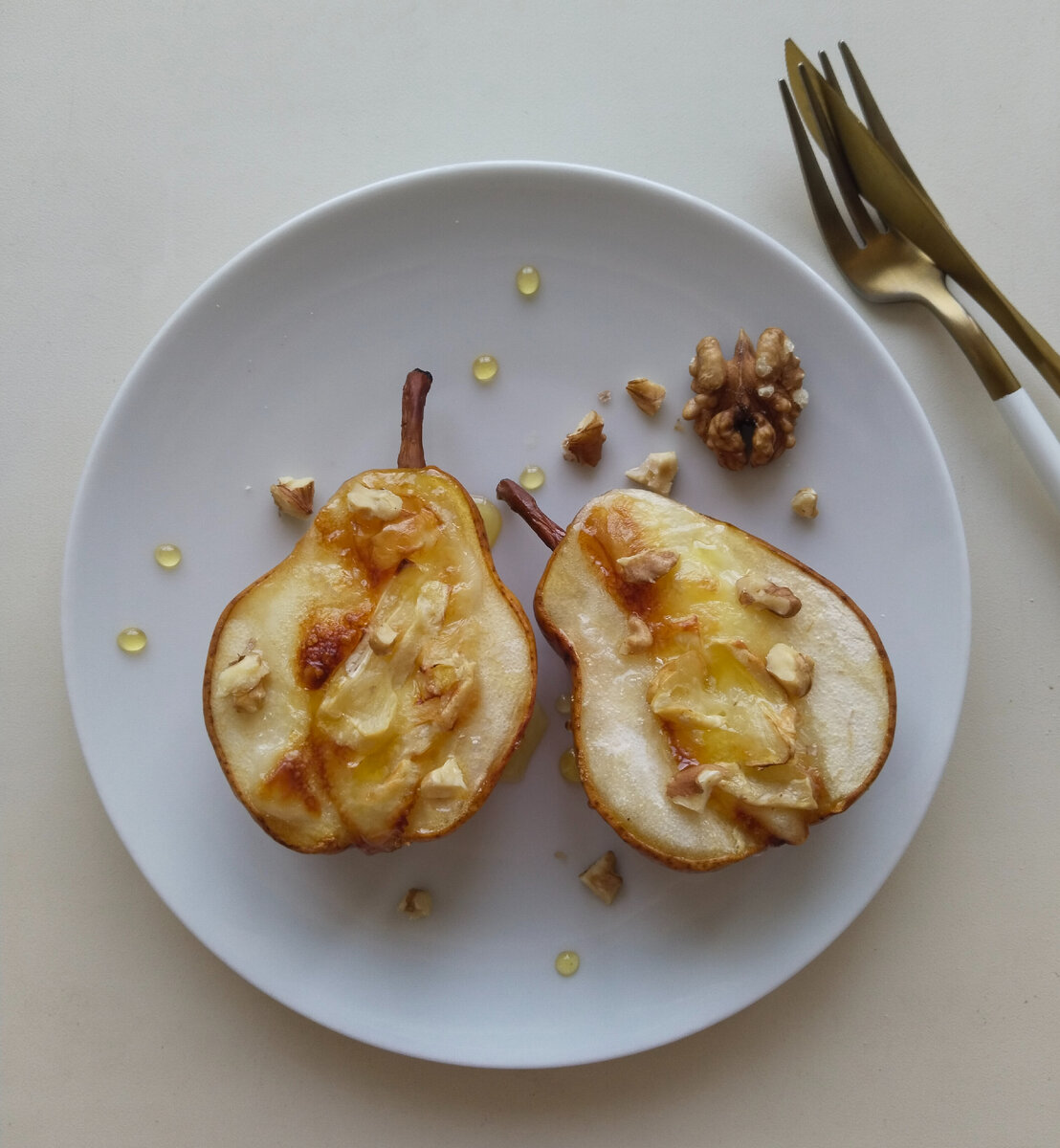 Пикантный десерт. Приготовление: Вымыть и обсушить груши (лучше выбрать плоды помягче). Разрезать пополам, удалить сердцевину. Положить в углубления сыр бри. Запечь в духовке при 180 градусах 20-25 минут. Готовые груши посыпать грецким орехом и полить мёдом. К десерту прекрасно подойдёт белое вино. Но и с любимым чаем - белиссимо. Приятного аппетита!