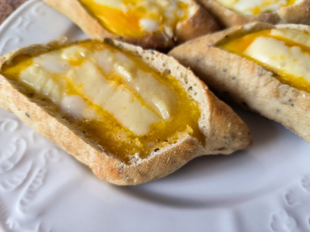 Не хочу откладывать этот рецепт надолго, так что я к вам сегодня снова с быстрым и вкусным блюдом для завтрака или перекуса. Это что-то между хачапури по-аджарски и ленивой пиццей, начинка может быть любая, на ваш вкус. В "Магните" нашла небольшие булочки "лодочкой": ароматные, хрустящие, с зернышками и маком. Думаю, во многих супермаркетах и пекарнях есть похожие. А если есть время и желание, можно постряпать такие дома. Готовлю за 5 минут 4 штуки: Сверху можно насыпать мелко нарубленную зелень, либо смешать яйцо с кусочками ветчины или помидора. Это очень вкусно, сытно и быстро!