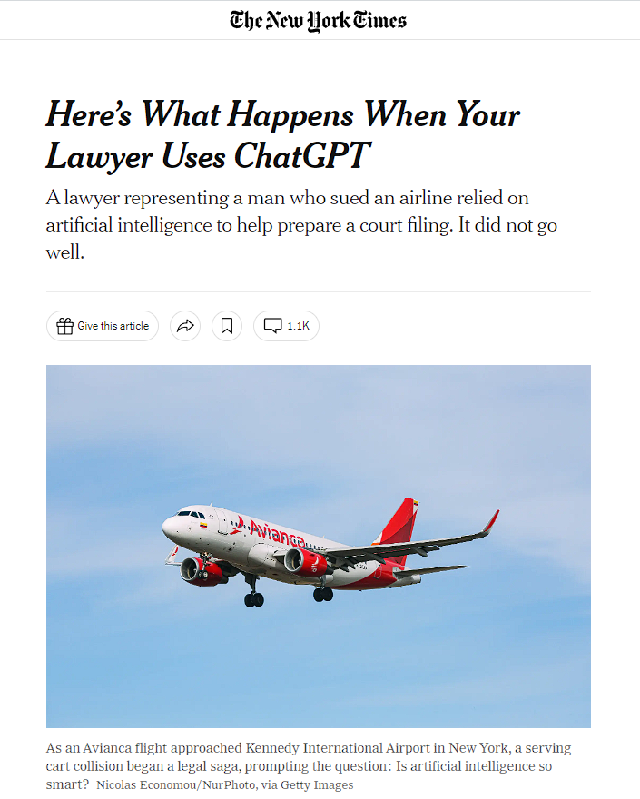 Для тех, кто считает, что искусственный суд с легкостью заменит настоящих юристов из-за океана пришла новость о том, что нейросеть повела себя как настоящий юрист — она попыталась обмануть судью. Об этом сообщают The New York Times. Адвокат, представляющий интересы пассажира в деле против «Колумбийских авиалиний», в ходе судебного разбирательства ссылался на судебные прецеденты. Однако в ходе судебного разбирательства выяснилось, что таких дел на самом деле не было. Позже выяснилось, что адвокат использовал инструмент искусственного интеллекта под названием ChatGPT для исследования дела, и хотя он спросил программу, реальны ли примеры, он не проверил информацию, прежде чем представить ее в суде. Юрист не собирался обманывать суд и выразил сожаление по поводу того, что доверился ChatGPT без надлежащей проверки. Судья по делу назначил слушание, чтобы принять решение о соответствующем наказании для адвоката.