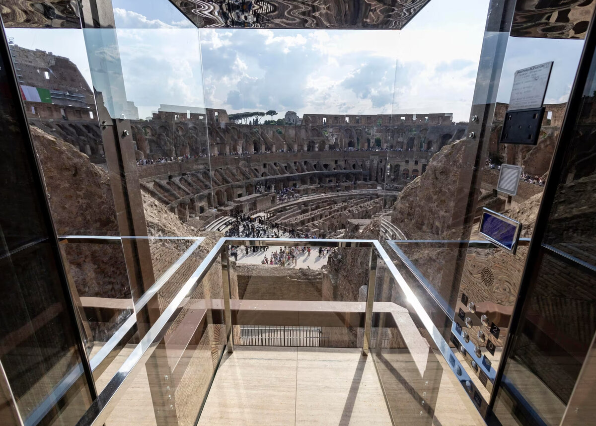 В Колизее был установлен лифт со стеклянной кабиной. 30 мая в Риме прошла торжественна церемония открытия первого лифта на территории Колизея. В мероприятии приняли участие министр культуры Италии Дженнаро Санджулиано, директор археологического парка Колизея Альфонсина Руссо, а также актер Рассел Кроу, наиболее известный по роли Максимуса в фильме «Гладиатор» Сообщается, что лифт сможет доставлять посетителей в галерею, расположенную между вторым и третьим этажами. Теперь здесь обустроено новое пространство, которое стало доступным после реконструкции. Сама же стеклянная кабина лифта позволит посетителям великой достопримечательности полюбоваться красивейшим видом на окрестности. Кроме того, туристам больше не придется преодолевать сотню крутых ступеней. Директор археологического парка Альфонсина Руссо прокомментировала установку лифта следующим образом: «Одной из приоритетных целей является доступность — как культурная, так и физическая, с маршрутами, которые доступны для всех». Понра