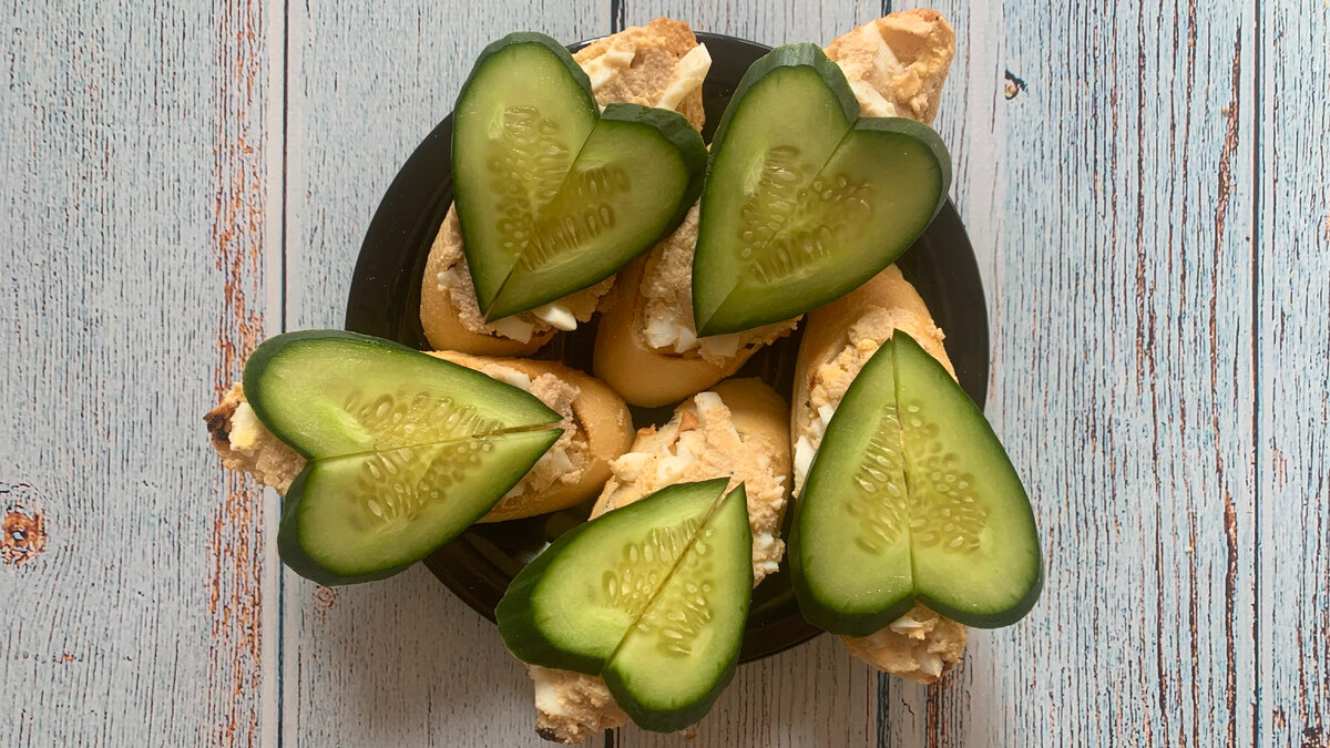 Недавно открыли для себя это сочетание, нам понравилось😋 Понадобится: Яйца отвариваем, нарезаем и смешиваем с икрой трески. Слегка обжариваем багет. Намазываем нашей смесью поджаренный хлеб. И сверху украшем огурцом💚 Приятного аппетита!
