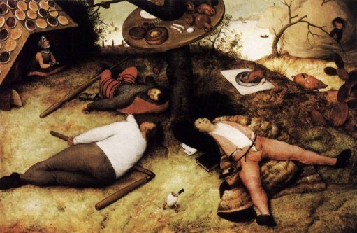 Брейгель, как и А.Н.Толстой, явно не скрывал своего язвительного отношения к человеческой бездейственности и пустым мечтам о благоденствии.