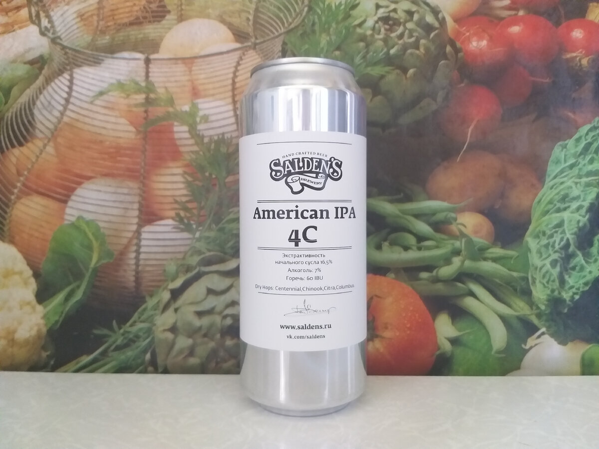 Приветствую всех на моём канале! Сегодня мой рассказ о пиве от тульской крафтовой пивоварни Salden`s Brewery. Эта пивоварня основана Денисом Сальниковым в 2012 году в Туле. Название Salden`s составлено из первых букв фамилии и имени основателя. Salden’s Brewery варит самые разнообразные сорта пива. Тут каждый сможет найти пиво по своему вкусу. На канале регулярно выходят новые обзоры пива от этой пивоварни. Переходите по этой ссылке для того, чтобы увидеть полный список доступных для просмотра материалов. Заметил, что на канале совсем мало обзоров про пиво от этой пивоварни в стиле IPA. Но не одними "томатками" знаменит тульский пивовар Денис Сальников. Ещё есть целая линейка очень интересных IPA, которые стоит попробовать. Сегодня я хочу рассказать читателям канала об "American IPA 4C". В составе этого пива заявлено четыре американских хмеля, названия которых начинаются с латинской буквы "С". Вот поэтому в названии именно "4С". Всё просто! American IPA 4C Пиво светлое нефильтрованное